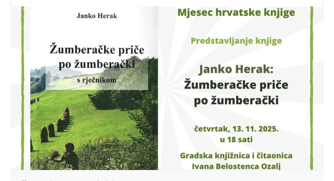 Pridružite nam se u četvrtak, 13. studenoga 2025. u 18 sati u Gradskoj knjižnici i čitaonici Ivana Belostenca Ozalj na predstavljanju knjige “Žumberačke priče po žumberački”. Knjigu je uz pomoć obitelji napisao pokojni znanstvenik Janko Herak i objavljena je posthumno, a u ozaljskoj će ju knjižnici predstaviti Jure Herak, Carol Herak-Kramberger i Maja Herak Bosnar.